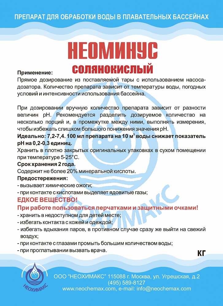 Для автоматических станций применяется прямое дозирование из поставляемой тары с использованием насоса-дозатора. Для понижения показателя РН на 0,1 в 10м³ необходимо 100мл препарата. Возможны изменения расхода препарата в зависимости от погодных условий, температуры воды и количества купающихся, как в сторону увеличения, так в сторону понижения.
