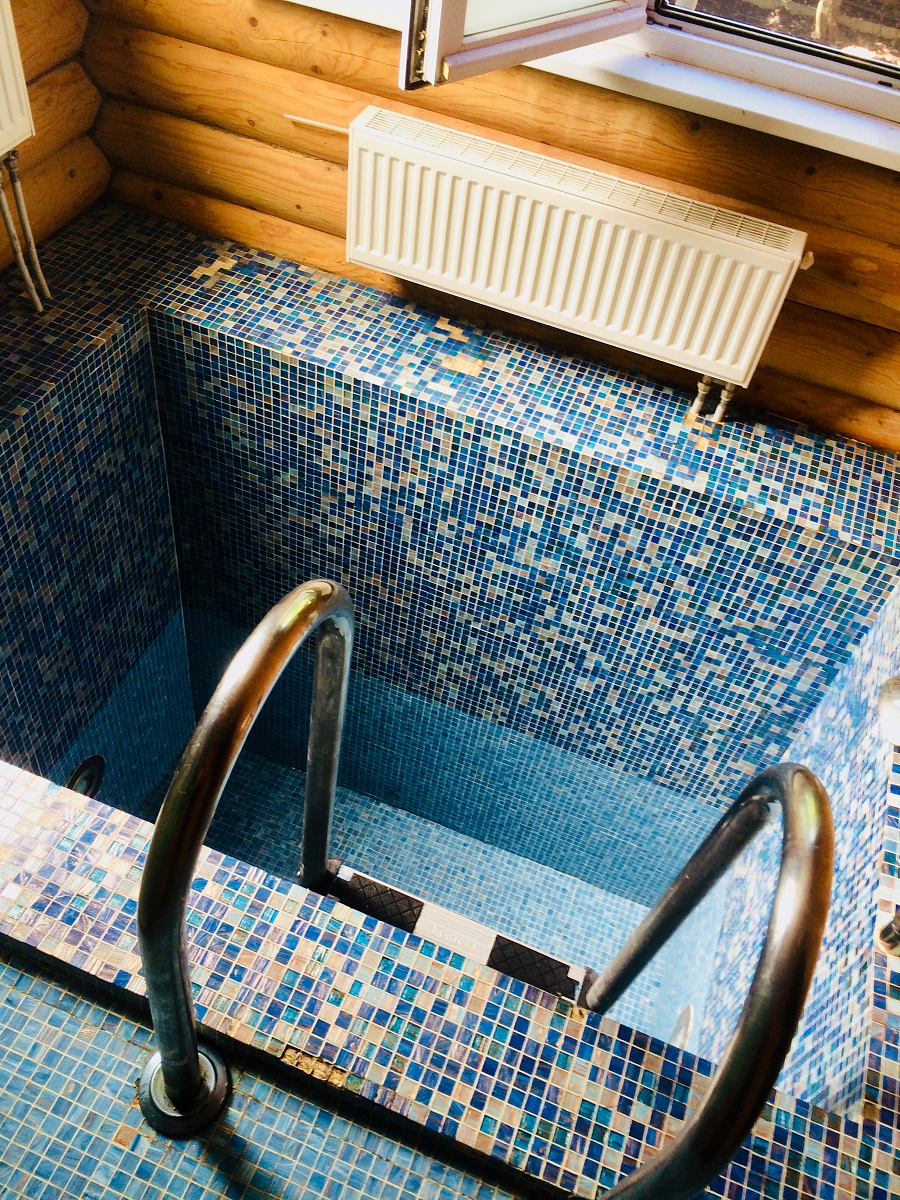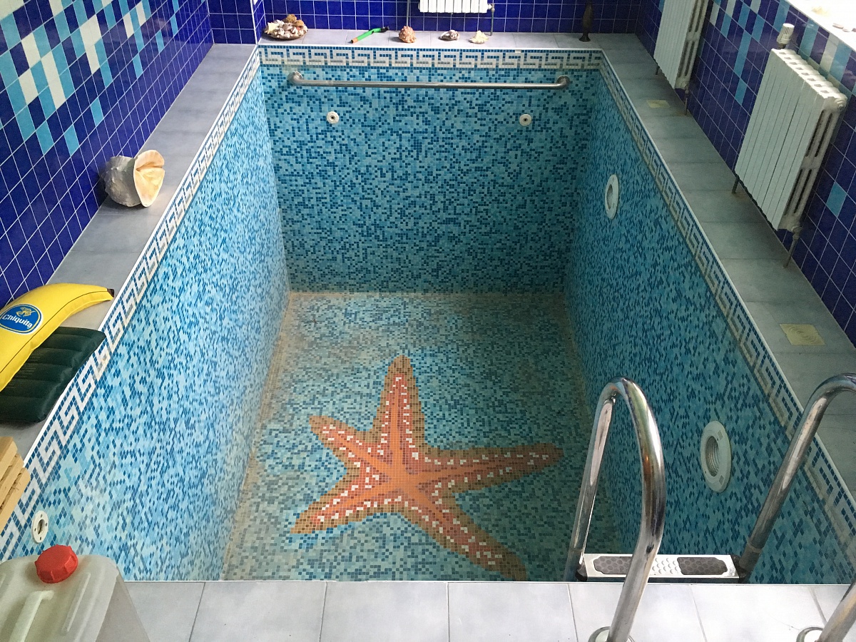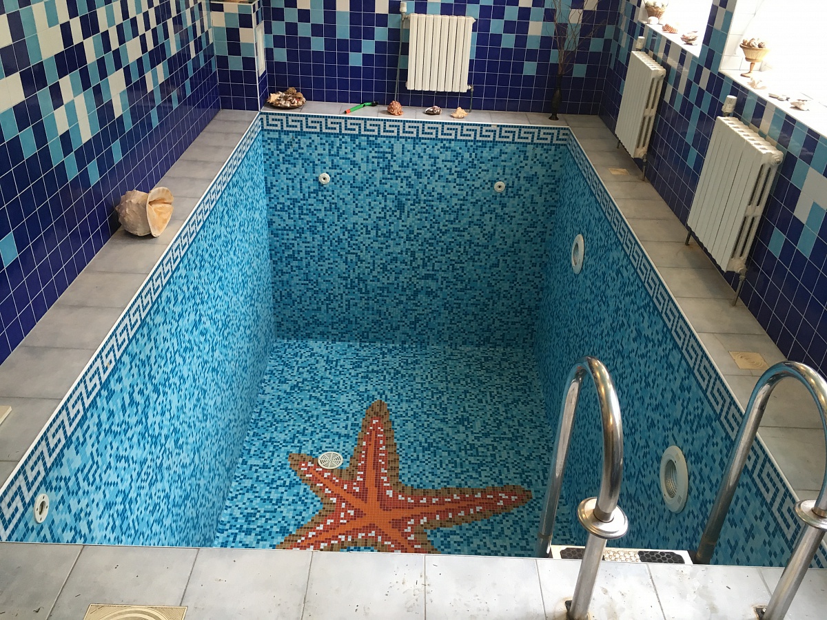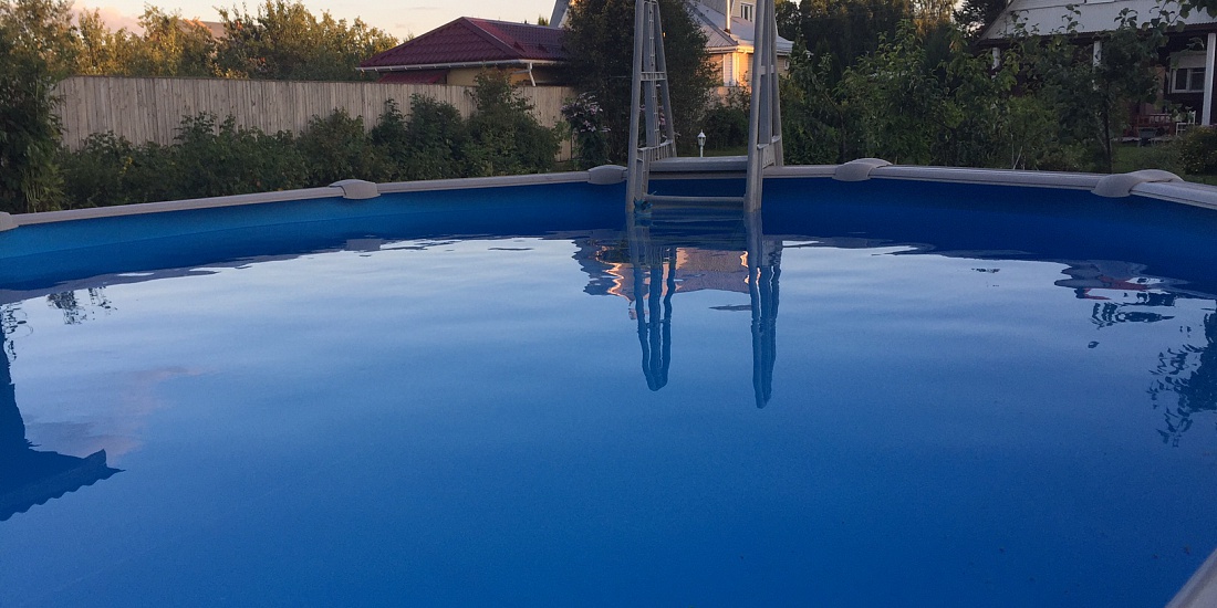 В частном доме на участке в уличном каркасном бассейне размером 3,5x5,5 м, глубиной 1,5 м была проведена замена старой пленки ПВХ, на новую армированную, кроме того был проведен и смонтирован фонарь для подсветки бассейна.