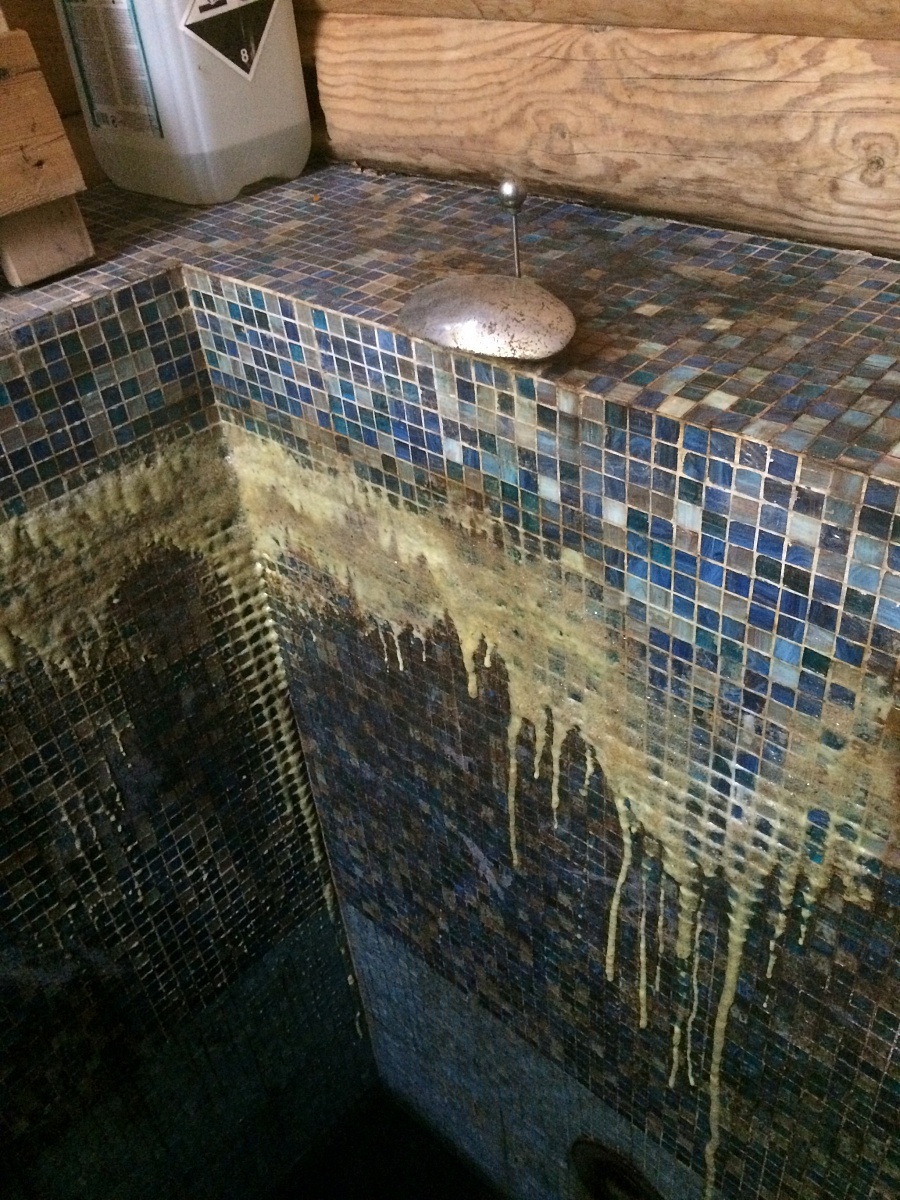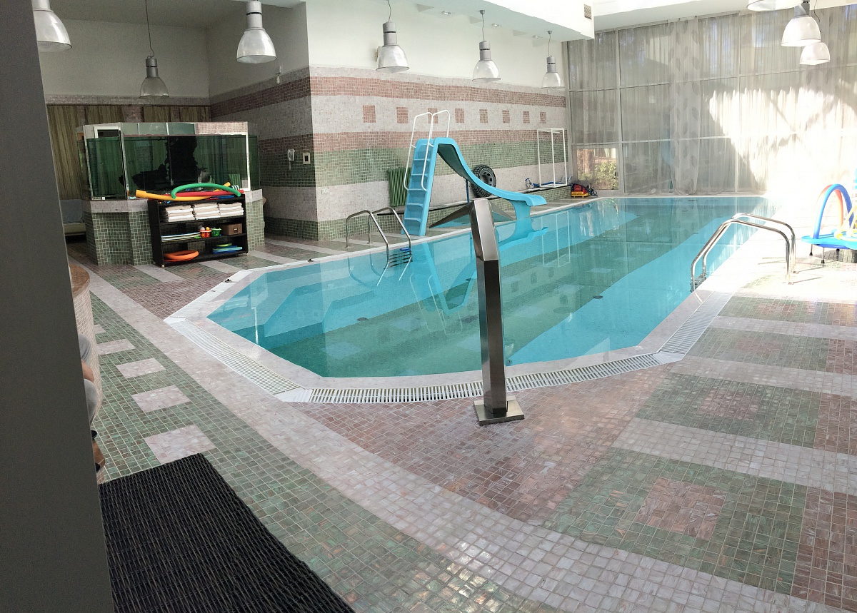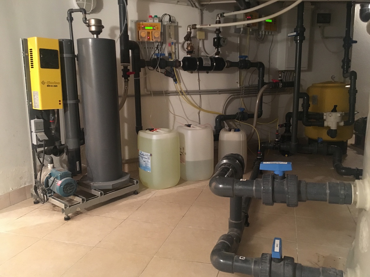 В частном доме на участке в уличном каркасном бассейне размером 3,5x5,5 м, глубиной 1,5 м была проведена замена старой пленки ПВХ, на новую армированную, кроме того был проведен и смонтирован фонарь для подсветки бассейна.